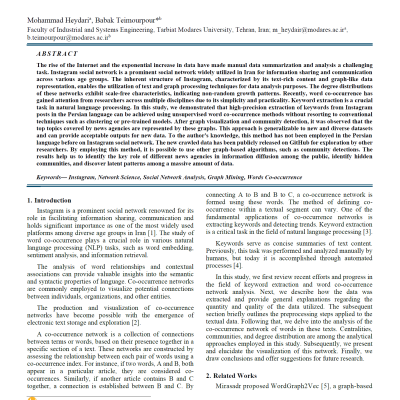 مقاله پژوهشی Analysis of Persian News Agencies on Instagram, A Words Co-occurrence Graph-based Approach توسط...